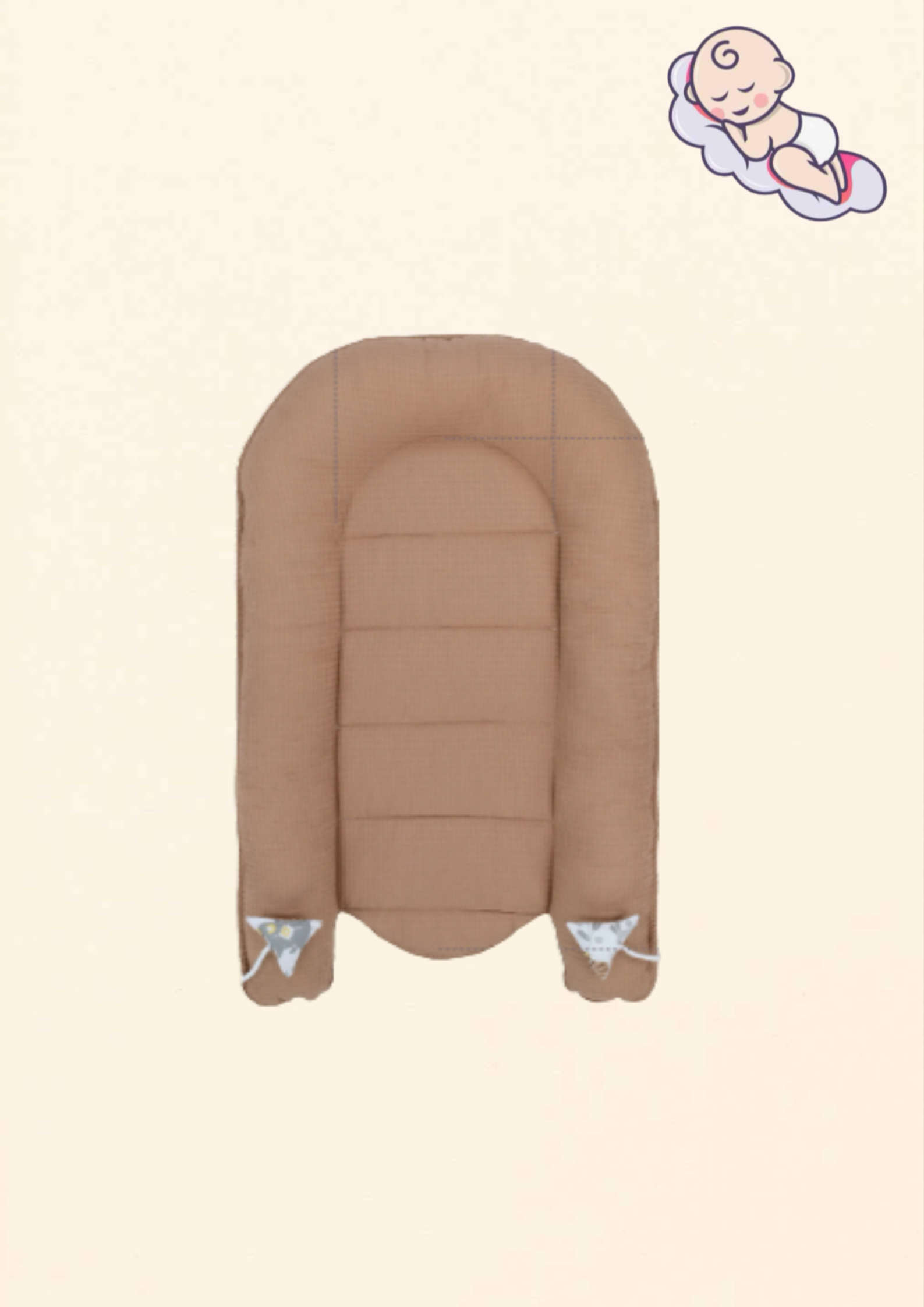 Babafészek újszülötteknek – 90x50 cm | Kézzel készített, pamutbéléssel, kétoldalas – Szarvasbarna