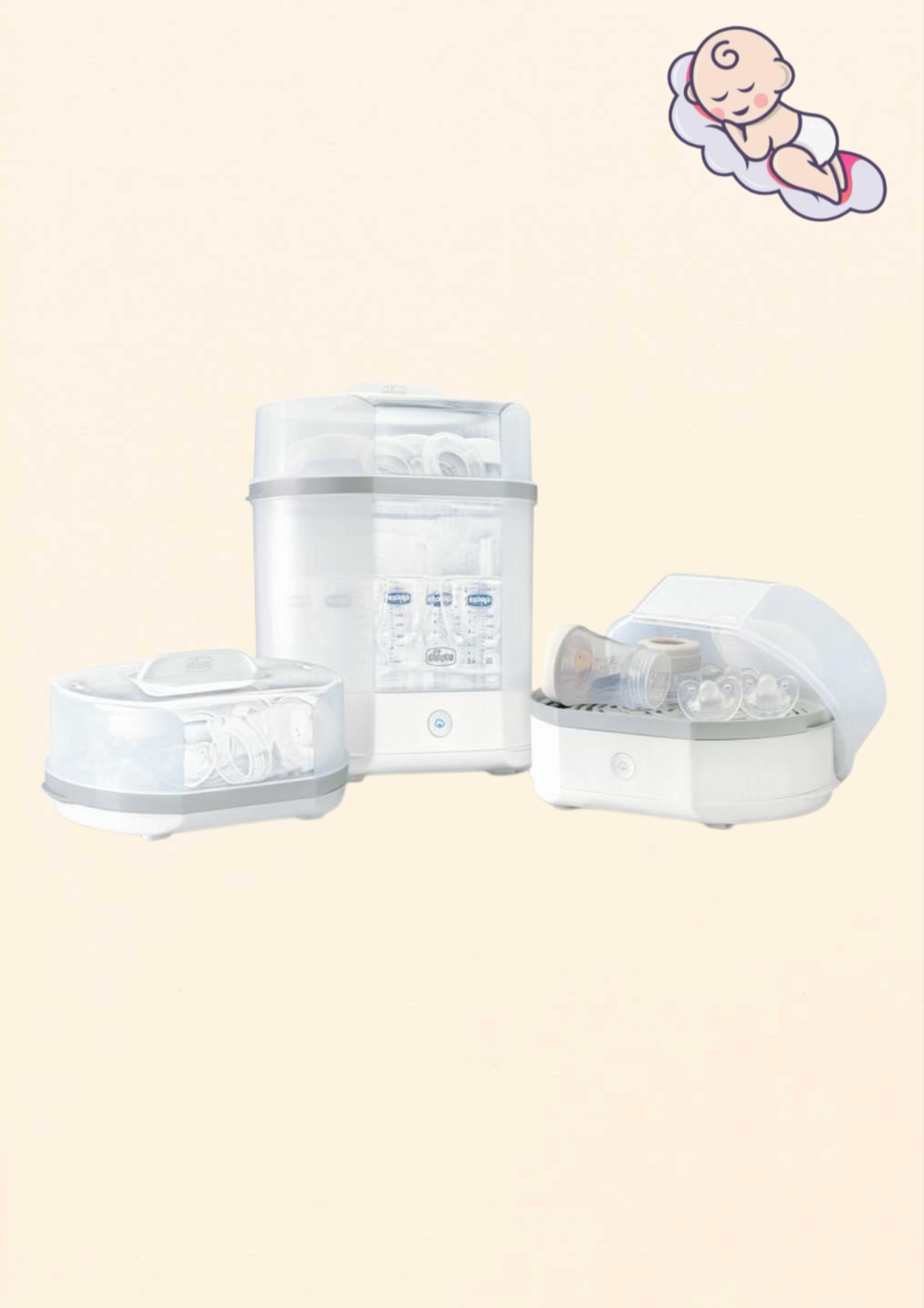A Chicco Elektromos Sterilizáló biztonságot, kényelmet és nyugalmat nyújt minden szülőnek – mert a baba egészsége a legfontosabb.