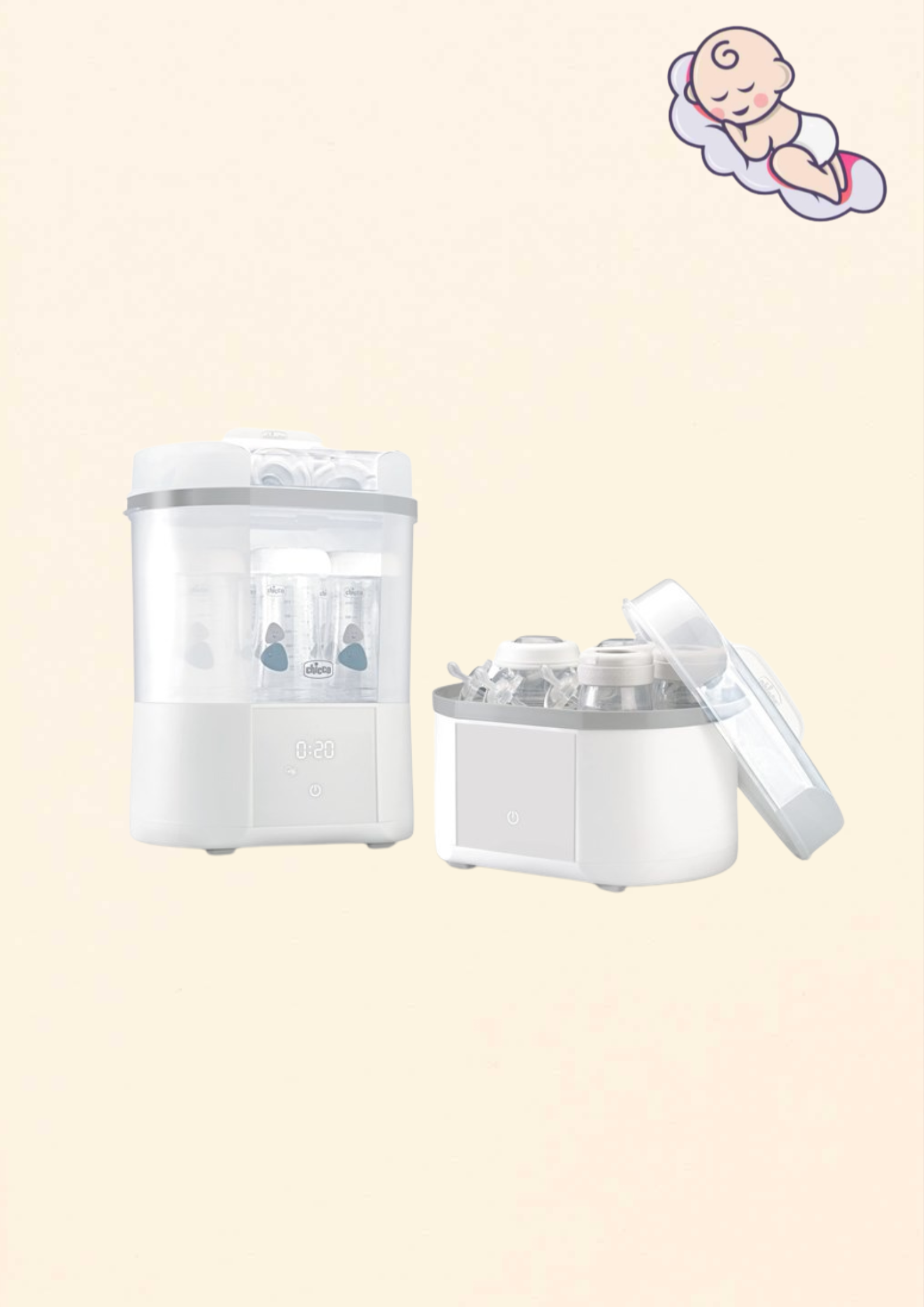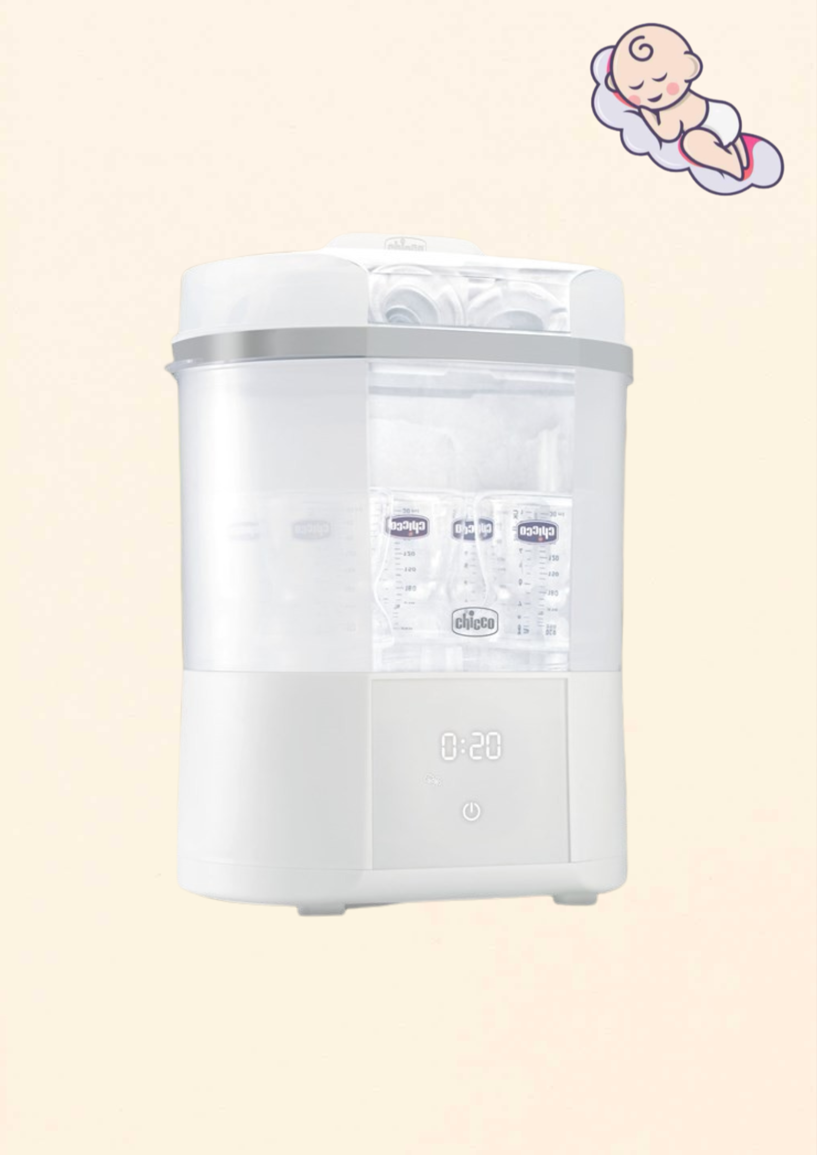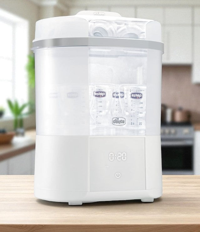 A Chicco elektromos sterilizáló és szárító ideális választás minden tudatos szülő számára, aki nem köt kompromisszumot babája biztonságát illetően. Tökéletes egyensúlyt kínál a higiénia, a gyorsaság és a kényelem között.