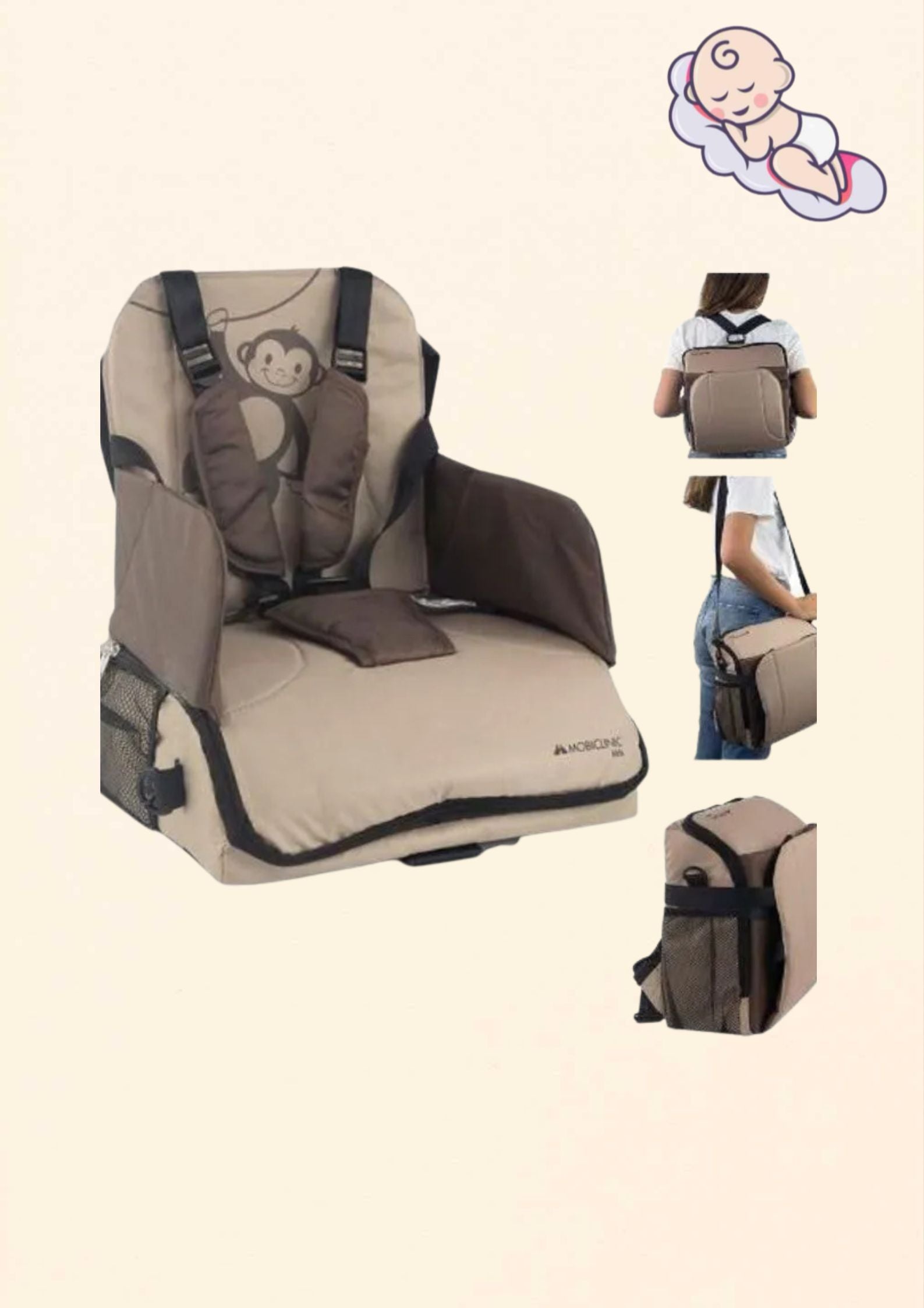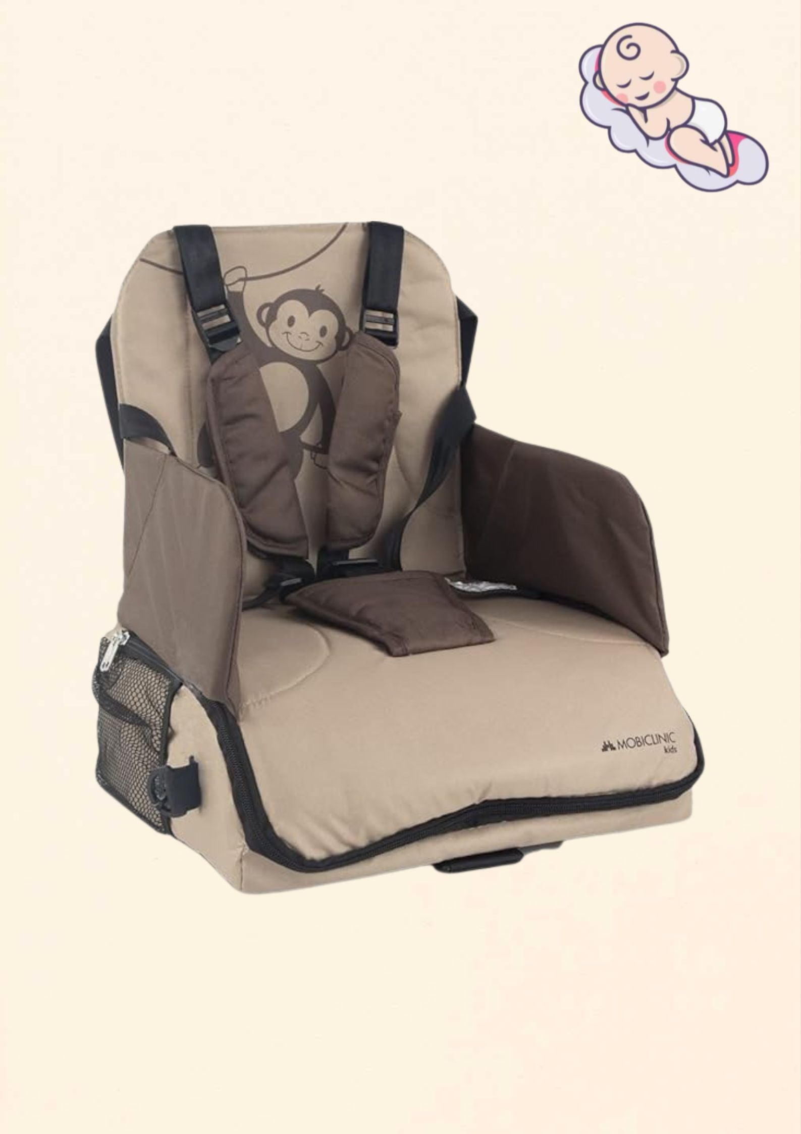 A Mobiclinic hordozható etetőszék tökéletes választás azoknak a szülőknek, akik szeretnék kényelmesen és biztonságosan etetni gyermeküket akár otthon, akár utazás közben. Vidám majom mintás dizájnjával nemcsak funkcionális, hanem szórakoztató élményt is nyújt a kicsiknek. Ideális választás 6 hónapos kortól akár 3 éves korig, legfeljebb 15 kg testsúlyig.